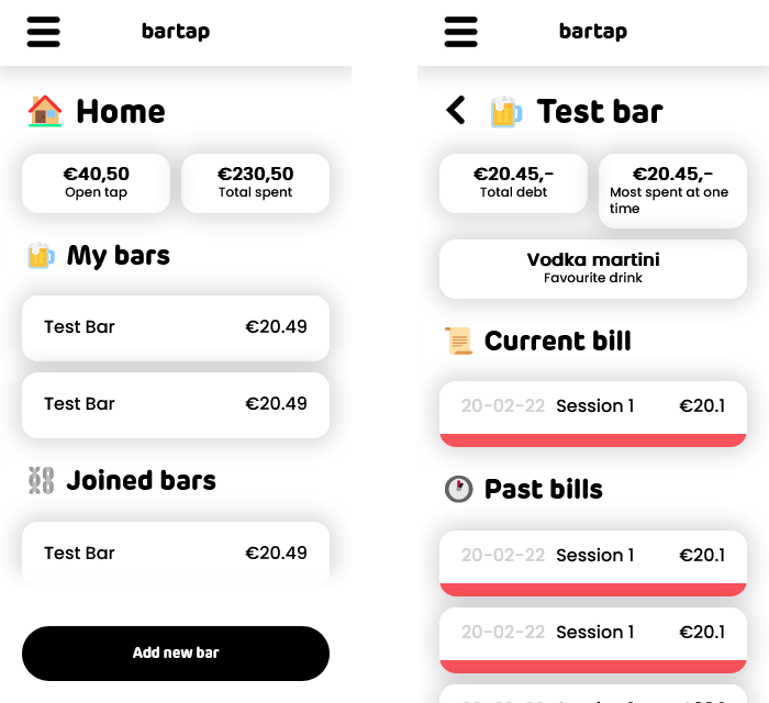 Testing the first release under in our friend group, we got a positive response. Since then we kept adding different features for the bar and customers.